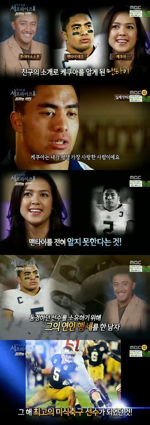 7월 13일 방송된 MBC '신비한TV 서프라이즈'에서는 동성팬에게 사기 연애를 당한 미국 최고 미식축구 선수 맨타이의 이야기가 그려졌다.