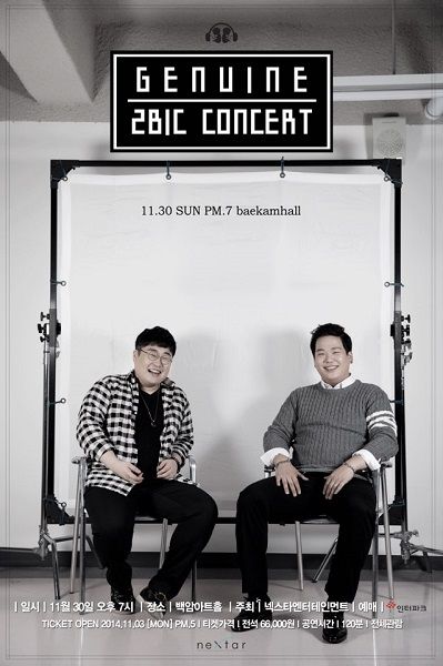 투빅은 30일 서울 삼성동 백암아트홀에서 두 번째 단독 라이브 콘서트 '2014 2BIC Concert-Genuine-'를 갖고 팬들과 만난다.