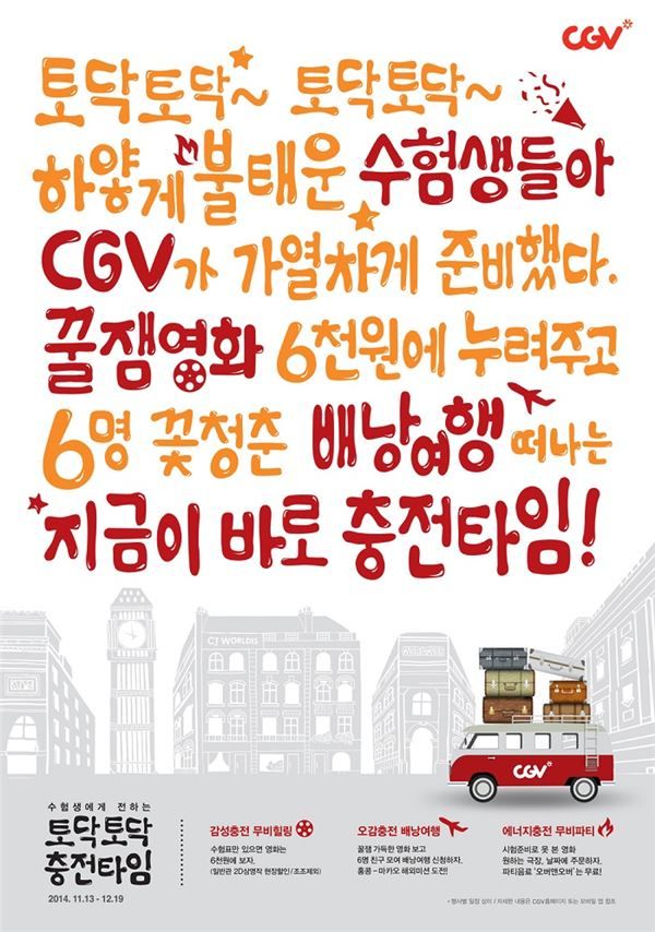 [SBS연예뉴스 | 김지혜 기자] CGV가 공부에 지친 수험생들에게 풍성한 이벤트를 마련했다.
